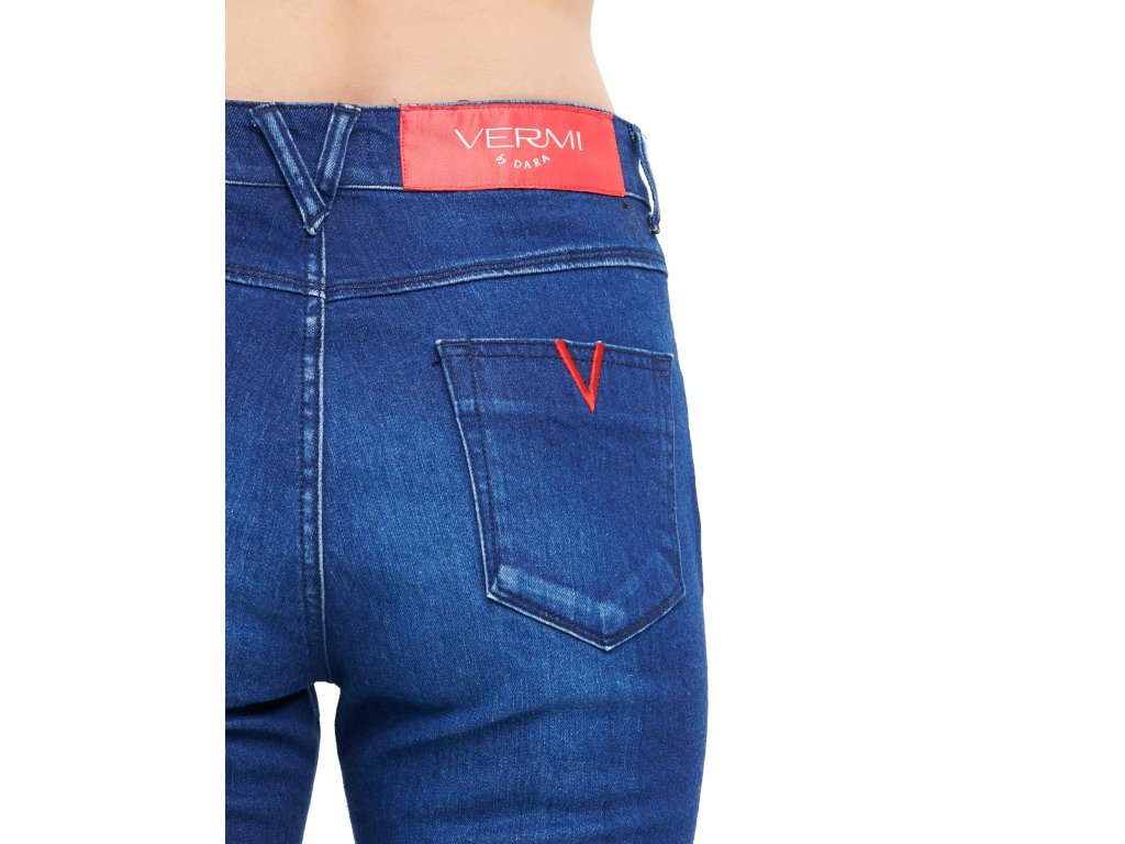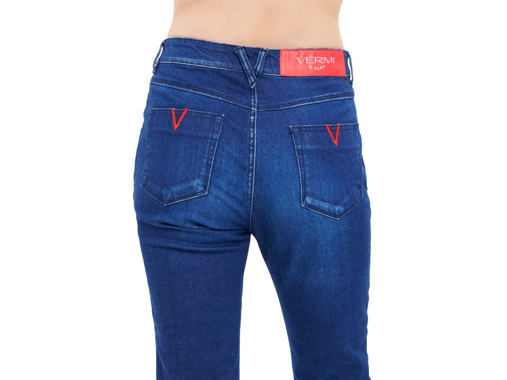 Džíny ze strečového denimu s úzkými nohavicemi, zapínáním jeden knoflík a zip. Originální červená výšivka ve tvaru „V“ na zadních kapsách. Noste jako klasické džíny s vysokým pasem nebo je lehce stáhněte dolů pro uvolněnější vzhled.Lehce sepraná džínovina podtrhuje nádherné indigo, jenž zároveň zvýrazňuje siluetu. Unikátní způsob praní tkaniny zvyšuje měkkost materiálu pro maximální pohodlí a dává dokonale vyniknout střihu v pohybu.
