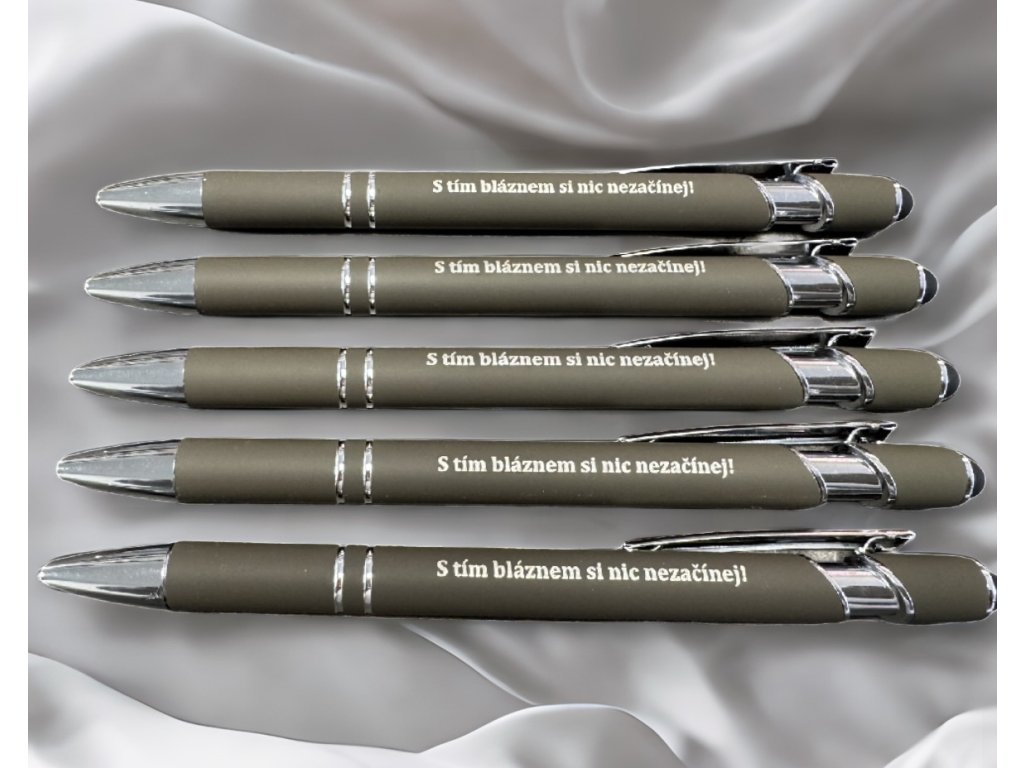 Propisovací tužka v hnědé barvě se stříbrným nápisem "S TÍM BLÁZNEM SI NIC NEZAČÍNEJ!".