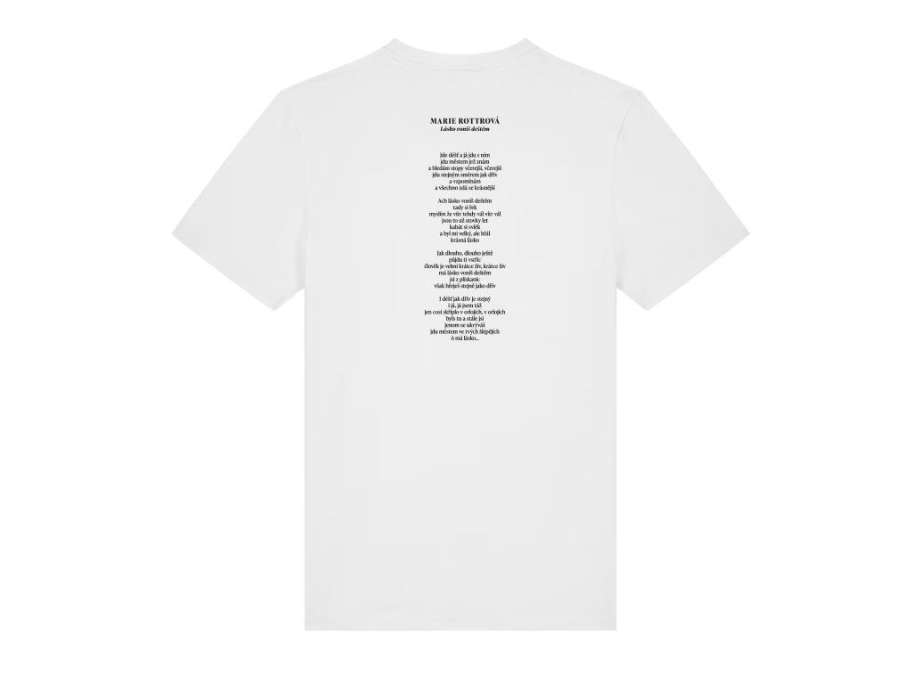 Bílé triko s oboustranným potiskem vydané jako oficiální merchandising Marie Rottrové k aktuálnímu koncertnímu turné.