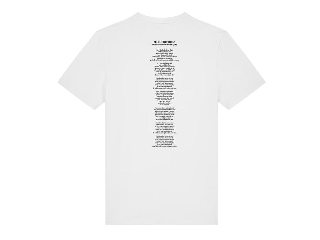 Bílé triko s oboustranným potiskem vydané jako oficiální merchandising Marie Rottrové k aktuálnímu koncertnímu turné.